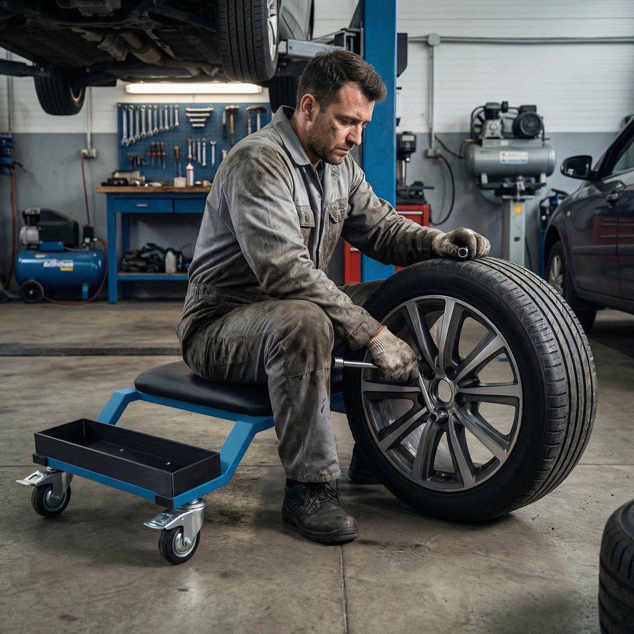 Двопозиційний підкатний стілець механіка від BigWash — це професійне рішення для оптимізації робочого процесу в детейлінг-студіях, на автомийках та в сервісних центрах. Ефективність роботи майстра безпосередньо залежить від його фізичного стану. Тривала робота в незручному положенні під час обслуговування нижніх частин кузова призводить до швидкої стомлюваності та зниження концентрації. Наш продукт розроблений спеціально для вирішення цих проблем, забезпечуючи максимальну ергономіку та мобільність робочого місця.