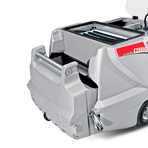 Всі підмітальні машини з місцем оператора від Comac оснащені цією технологією, електричним двигуном або гідравлічним мотором.