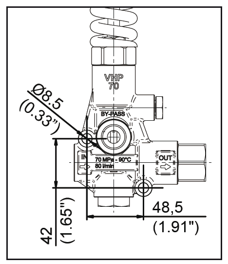 Перепускний вентіль (байпас) VHP70 G1/2 F без ручки 700 Бар Tecomec