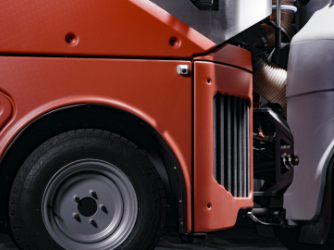 Повністю засклена кабіна забезпечує гарний огляд робочої зони. А вбудована камера збільшує поле огляду ще на 270 °, що важливо при інтенсивному русі у міських умовах.