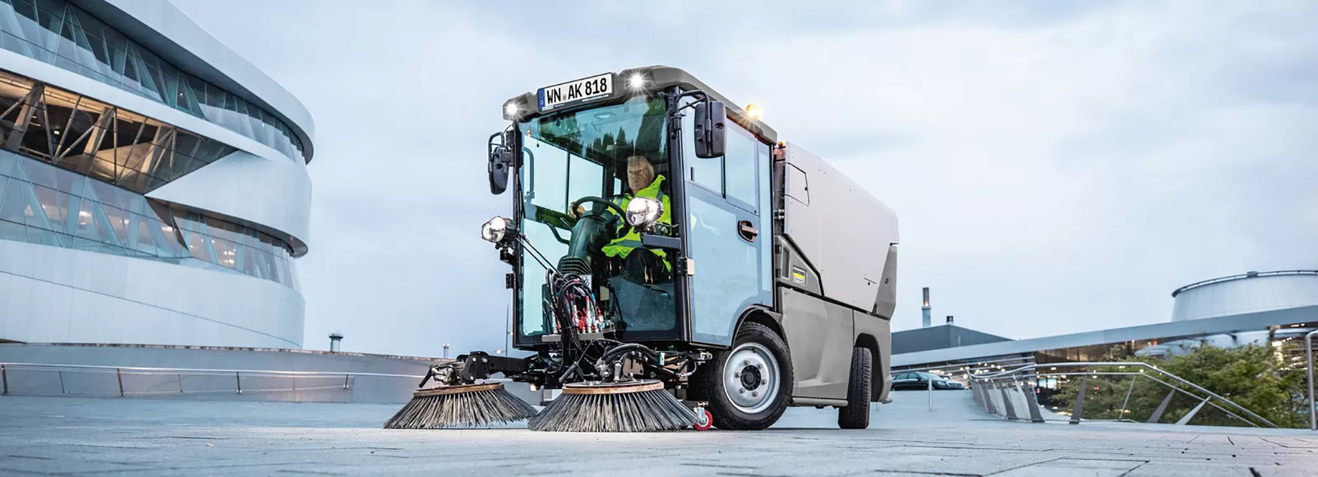 Продуманий дизайн MC 250 забезпечує неперевершену продуктивність прибирання завдяки низьким оборотам двигуна, великому об'єму сміттєзбірника об'ємом 2,5 м³, високій швидкості руху 60 км/год та максимальному комфорту водіння. Велика кабіна з кондиціонером та зручними сидіннями, а також ергономічна концепція управління з чітко розташованим багатофункціональним дисплеєм на обід рульового колеса забезпечують приємне робоче середовище та високий рівень зручності для користувача. Наш MC 250 також оснащений системою керування всіма колесами для чудової маневреності та ефективною системою циркуляції води з окремим баком для брудної води.