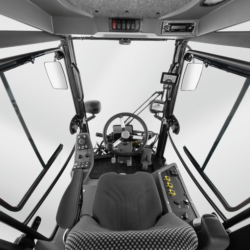 Найбільша кабіна в цьому класі, з круговим оглядом на 360 ° і чітким та ергономічним розташуванням елементів управління. Вікна по обидва боки, що замикається, для зберігання, USB- роз'єм для зарядки, тримач для напоїв. Вхід та вихід з обох сторін для максимальної гнучкості при роботі
