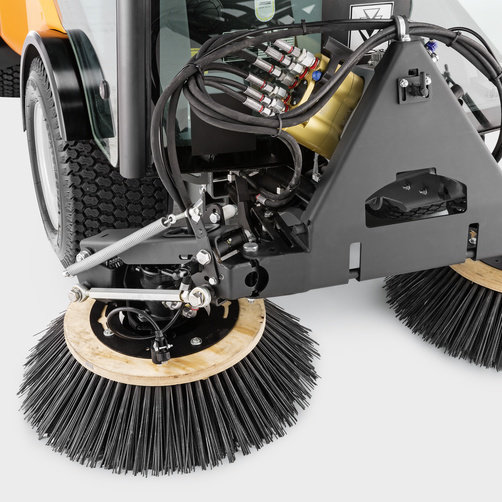 Легко вмонтовується двощіткова система з роздільним керуванням і роздільним відривом щіток від землі. Бункер для сміття на 800 л з системою циркуляції води і бак для чистої води на 185 л. Можливість дооснащення різними монтажними комплектами, такими як третя бічна щітка або щітка для видалення бур'янів