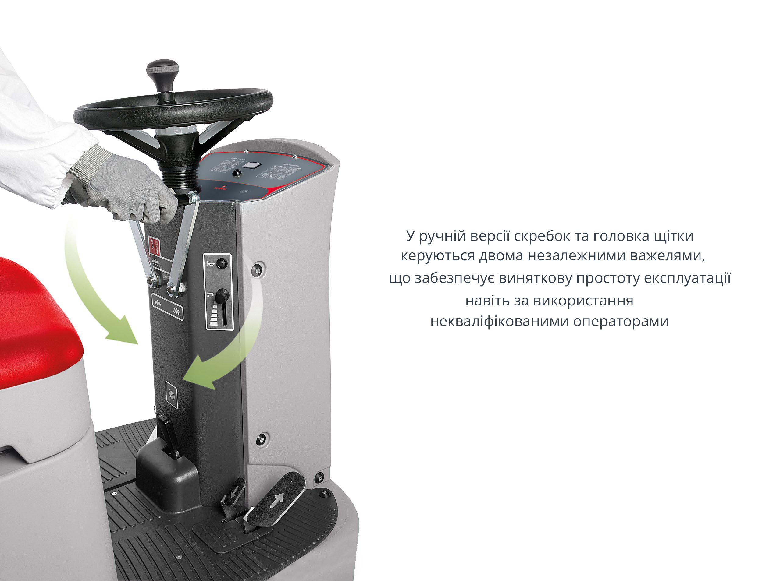 У ручній версії скребок та головка щітки керуються двома незалежними важелями, що забезпечує виняткову простоту  експлуатації навіть за використання некваліфікованими операторами.