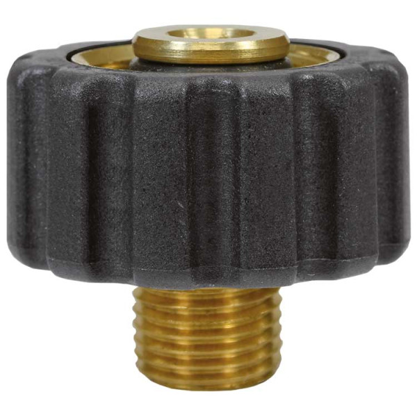 Цей латунний адаптер — ідеальне рішення, якщо вам необхідно вкрутити фітинг у порт із внутрішнім різьбленням 1/4" (наприклад, у піноутворювач, грязьову фрезу, пістолет або щітку), щоб отримати можливість швидко прикручувати цей аксесуар до шлангів або списів зі стандартним виходом М22 (штуцером). Вбудована пластикова гайка перетворює звичайну насадку на зручний швидкознімний інструмент.