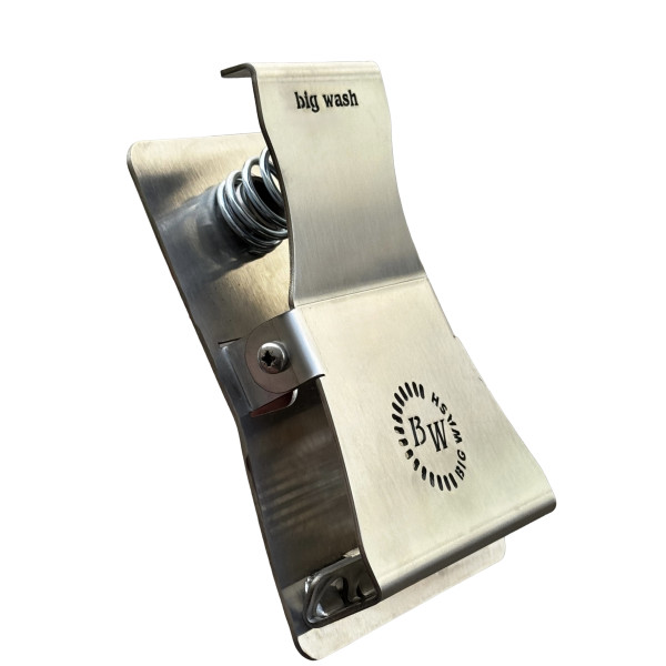Оригінальний настінний тримач (прищіпка) для автомобільних килимків від бренду Big Wash у преміальному глянцевому виконанні. Цей надміцний аксесуар розроблений для професійного оснащення постів на автомийках самообслуговування (МСО) та в студіях детейлінгу. Він дозволяє надійно закріпити килимок на стіні для ретельного очищення водою під високим тиском, підкреслюючи високий статус та естетику вашої автомийки.
